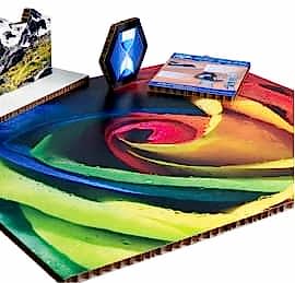 Технологию УФ-печати удобно использовать для брендирования картонных коробок, упаковки и коммерческого декора - нанесения логотипов компании, и других маркетинговых символов и Pin-Up на картон и гофротару. Также на гофрокартоне можно печатать фотографии и создавать картонные фигуры людей и предметов. Такая печать обеспечивает долговечность изображения на материале, изделия можно использовать многократно.